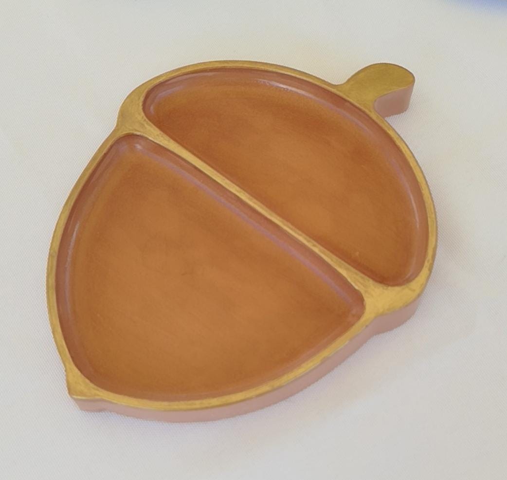 La bellota, pequeña semilla del roble, simboliza el comienzo, la fuerza y la paciencia de lo que crece lentamente. Esta bandeja artesanal captura esa esencia: la belleza de lo humilde, lo cotidiano y lo cálido.